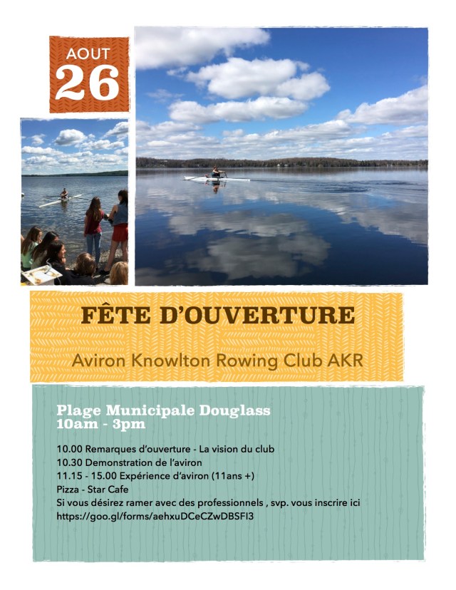 Le Club AKR (Aviron Knowlton Rowing) a été créé en mai 2017 pour promouvoir la discipline de l’aviron au Lac Brome. Il a pour mission d’appuyer les avironneurs d’élite qui s’entraînent chez-nous et de démocratiser la pratique de cette discipline sportive.